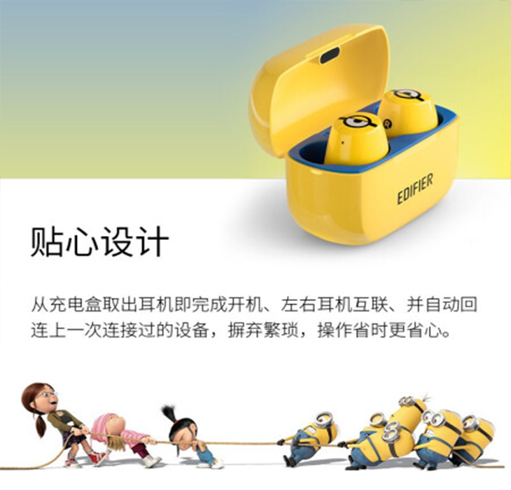 漫步者(EDIFIER)W3“小黄人” 真无线蓝牙耳机 迷你入耳式耳机 通用苹果安卓手机