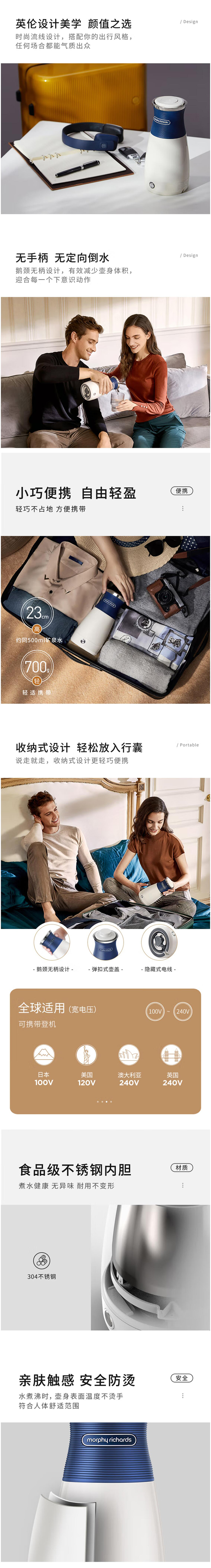 摩飞电器电水壶烧水壶便携式家用旅行电热水壶随行冲奶泡茶办公室养生保温杯MR6090蓝色