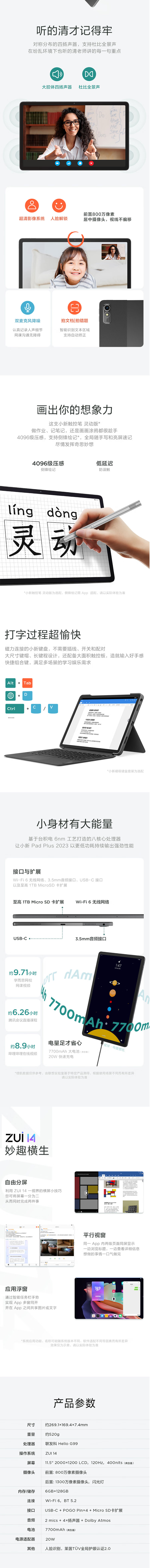 联想平板小新Pad 安卓平板电脑 学生学习办公 莱茵低蓝光 护眼模式 2K真彩全面屏绘画平板 PadPlus 2023